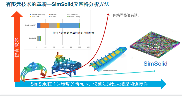 Altair SimSolid 是一個結構仿真工具,直接用原始的未經簡化的幾何裝配體建模,不需要劃分網格,在幾秒至幾分鐘內提供結果,計算精度高,分析流程簡單,并且SimSolid只需要傳統CPU和桌面級的配置即可,以高的效率運算。